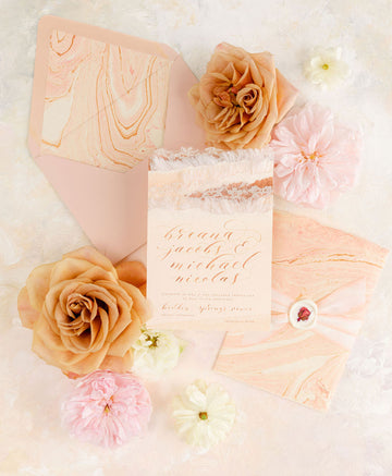Beyond templates, these invitation suites are completely customized with hand-crafted calligraphy, bespoke materials, and more to capture the essence of your special day.